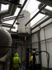 Nach dem der Speicher fertig besprüht wurde, kleiden unsere Mitarbeiter den Dom innen mit 50mm Armaflex an den Wänden aus. |